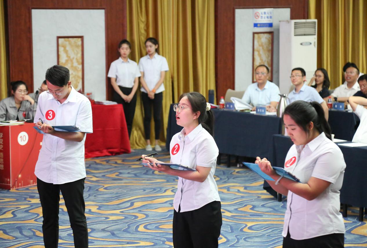 本次竞赛分为初赛和决赛两个阶段。其中,初赛共有两轮,选手们先后完成了个人必答、小组共答、现场抢答、危害互动四个环节,最终选拔出10支参赛步队进入决赛的比拼。决赛还增加了“精准书写”“党史排排看”两类题型,不但需要参赛选手有扎实的党史知识储备,还十分考验选手们的临场反应能力。