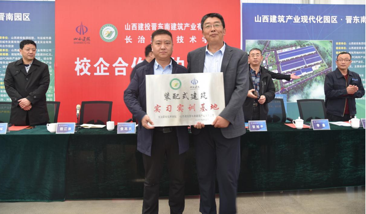 长治职业技术学院招生就业办、土木工程系卖力人及师生代表,山西建投装置集团园区办、晋东南建筑工业有限公司相关卖力人加入签约仪式。