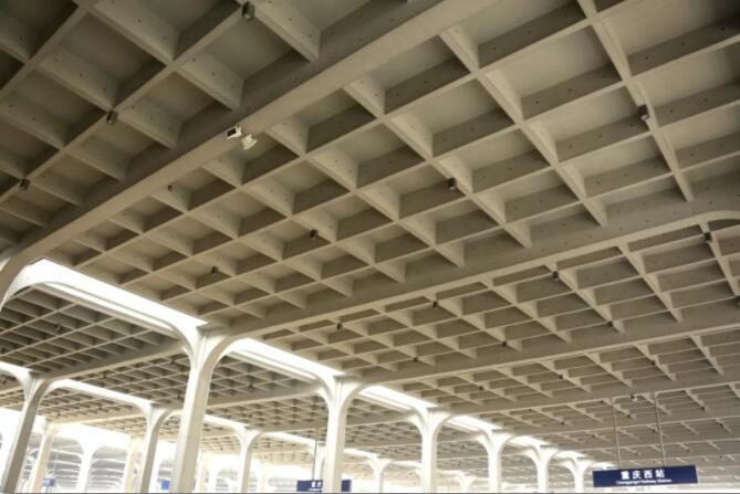 重庆西站(重庆至贵阳铁路扩能革新工程重庆西站站房及相关工程)是国家铁路干线“八纵八横”综合铁路枢纽之一,是集轨道交通、远程汽车、市内公交、出租车等交通方法为一体的综合特大型铁路交通枢纽建筑。工程位于重庆市沙坪坝区,总建筑面积201052㎡,其中站房(含东站房、高架站房)119944㎡,站台雨棚81108㎡,建筑高度38.4m,地下一层为出站层,地上二层为站台、候车和设备、办公用房。