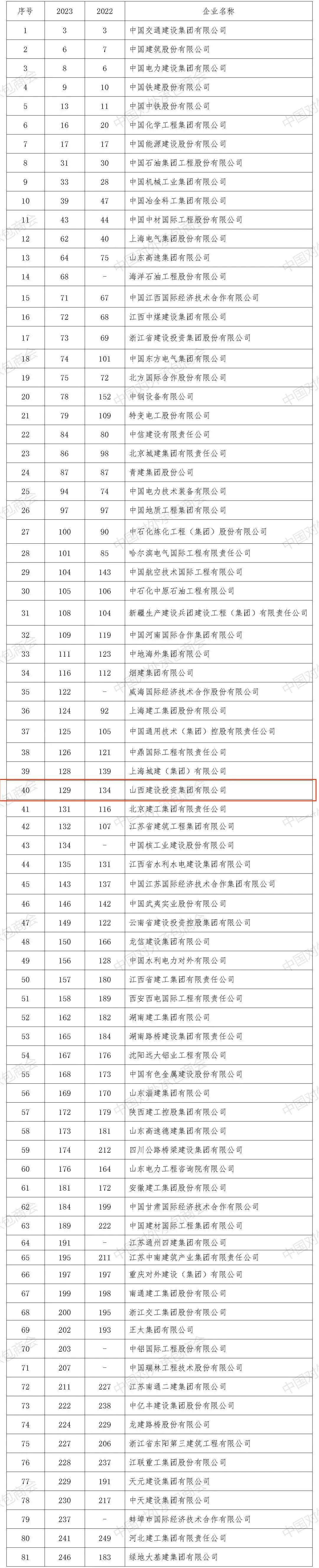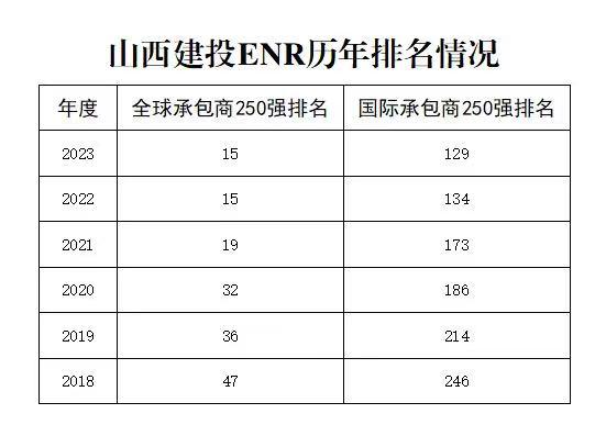 8月24日,美国《工程新闻纪录》(ENR)2023年度“全球承包商250强”和“国际承包商250强”榜单宣布,山西建投集团排列第15位、第129位,国际承包商榜单较去年上升5位,这也是建投集团排名连续六年连续攀升,国际品牌竞争力连年增强。