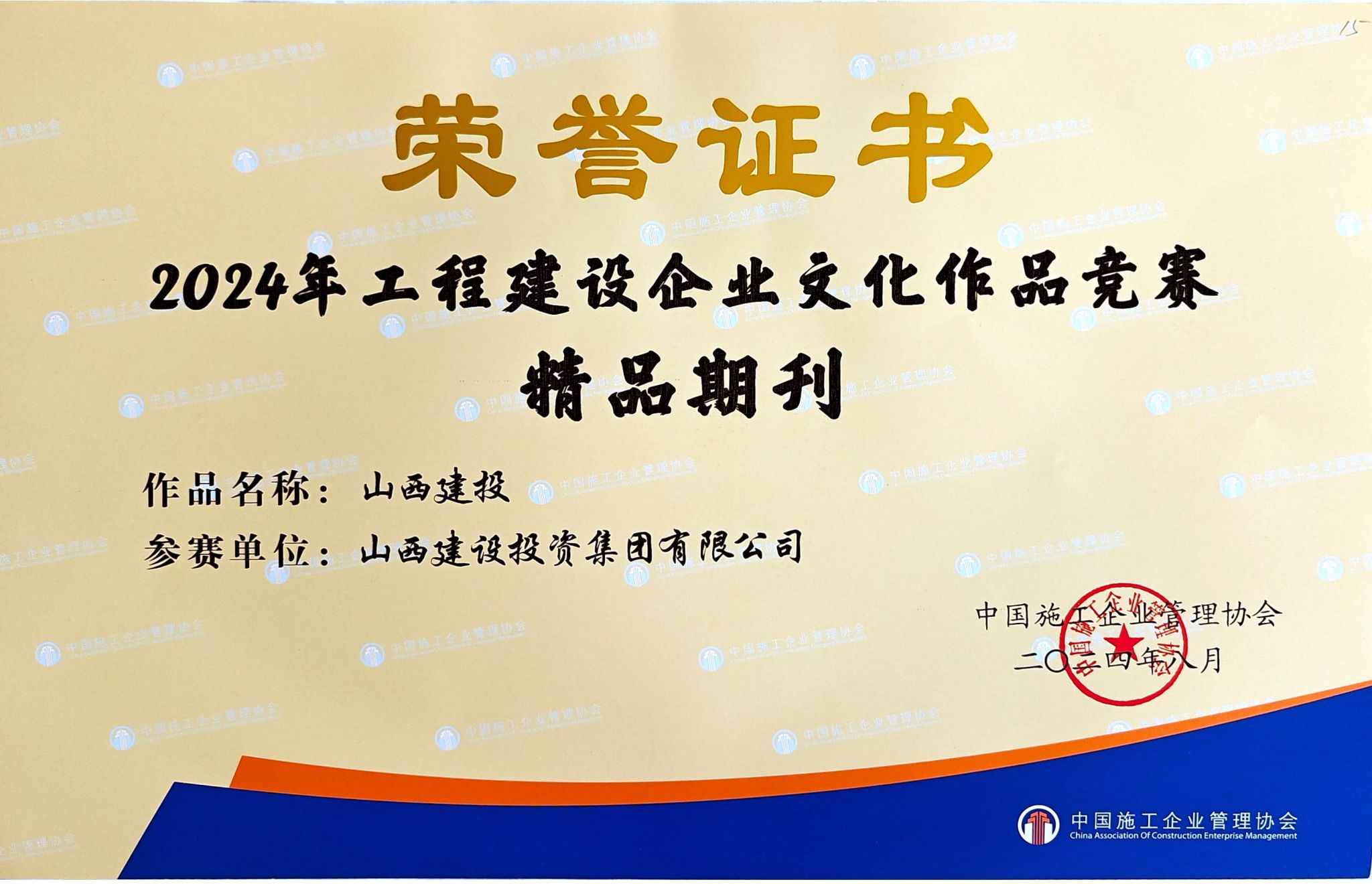 9ÔÂ4ÈÕÖÁ6ÈÕ£¬ÖйúÊ©¹¤ÆóÒµÖÎÀíЭ»áÔÚÄϾ©ÕÙ¿ª2024Ä깤³ÌᦻáÆóÒµÎÄ»¯Ð±¦»á½á¹û½»Á÷»á£¬±íÑïÁ˹¤³ÌᦻáÆóÒµÎÄ»¯Ð±¦»áÏȽø°¸Àý¼°ÓÅÐã½á¹û£¬É½Î÷½¨Í¶¼¯ÍʲÈÙ»ñ75ÏîÈÙÓþ¡£