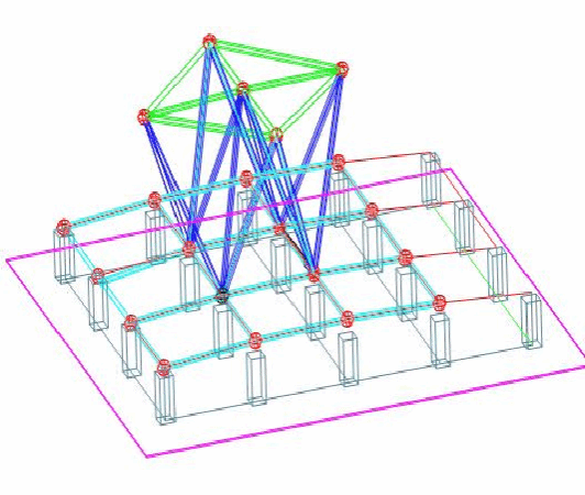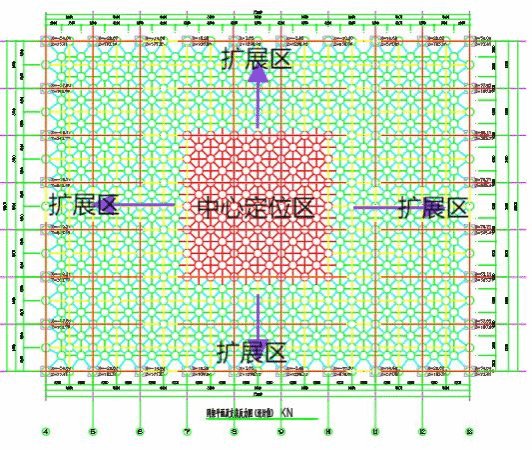 面对装置高度高、跨度大,造型庞大,结构杆件数量多、规格各异等多重挑战,项目团队迎难而上,为确保顶升装置精准度和施工宁静,项目部精心策划,接纳了“地面拼装、整体顶升、高空散装”相结合的施工要领,利用“分段组装、挠度控制法”从大厅中间区域起步,向四周延伸,直至整个网架装置成型。在顶升历程中,设置8处顶升点,实时监测,同步控制,8台大型液压设备同步起吊,相邻点同步误差控制在±15毫米以内。