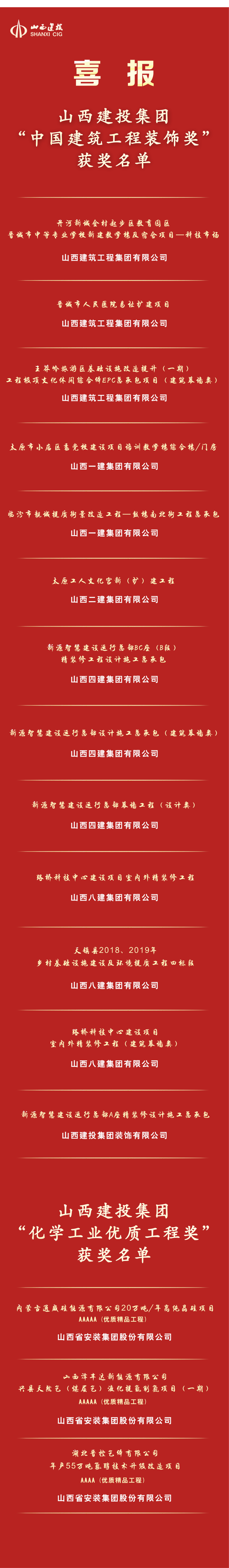 ½üÈÕ£¬É½Î÷½¨Í¶¼¯ÍŶà¸öÏîÄ¿ÈÙ»ñÐÐÒµ×î¸ßÈÙÓþ¡£