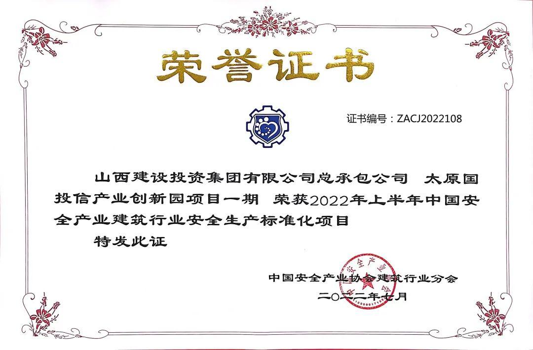 7月25日,中国宁静工业协会建筑行业分会传来捷报,在2022年中国宁静工业建筑行业宁静生产标准化评比中,由山西建投总承包公司承建的建投·紫宸府一期T22地块、二期T24地块及太原国投信息工业立异园项目一期共计2个项目榜上有名,荣获2022年上半年中国宁静工业建筑行业宁静生产标准化项目荣誉称呼。