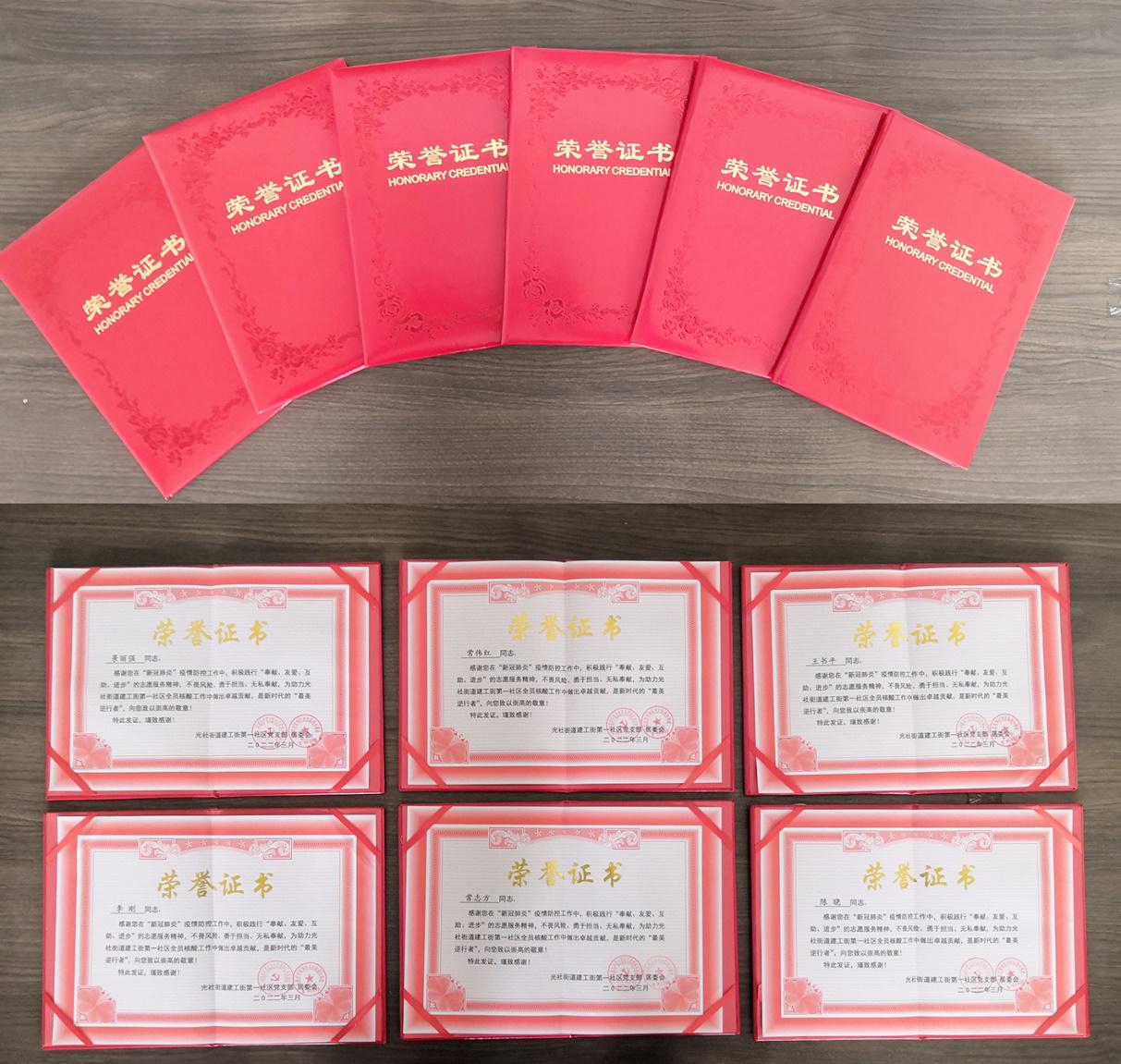 经过几天的艰苦斗争,尖草坪区疫情获得有效控制,光社街道建工街第一社区对公司支持抗击疫情事情给予充分肯定,并为志愿者宣布了荣誉证书。