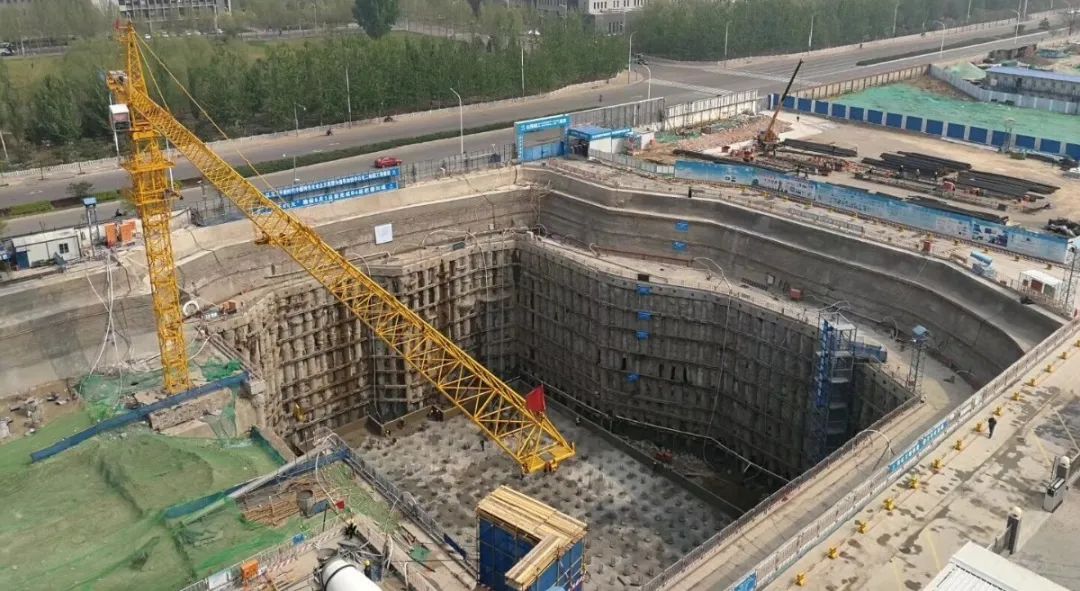 项目于2017年3月开工,通过对超深基坑变形机理与时空效应的研究,将复合土钉墙+桩锚结构的支护深度生长到31.4米的深度,通过接纳技术步伐形成了三轴搅拌桩在较硬地质层34米深度的施工要害技术,形成了承压水地层中锚杆施工新技术和新工艺等多项技术结果,包管了超深基坑工程的宁静。