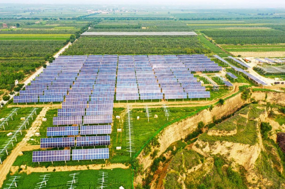 该工程位于陕西省渭南市合阳县金峪镇,占地面积约3400亩,光伏发电系统由37个方阵组成,其中包括64MW牢固式方阵,24MW牢固可调方阵,12MW平单轴方阵,选用375瓦Perc双面单晶硅组件。作为国家第三批领跑者计划10个“应用领跑者基地”之一,三峡新能源渭南光伏发电100MWp工程是集光伏、农业和旅游为一体的新型复合型光伏电站,实现了生长清洁能源、生态修复、特色旅游等多工业融合的目标,具有良好的经济效益和社会效益,对增进地方经济生长具有重要意义。