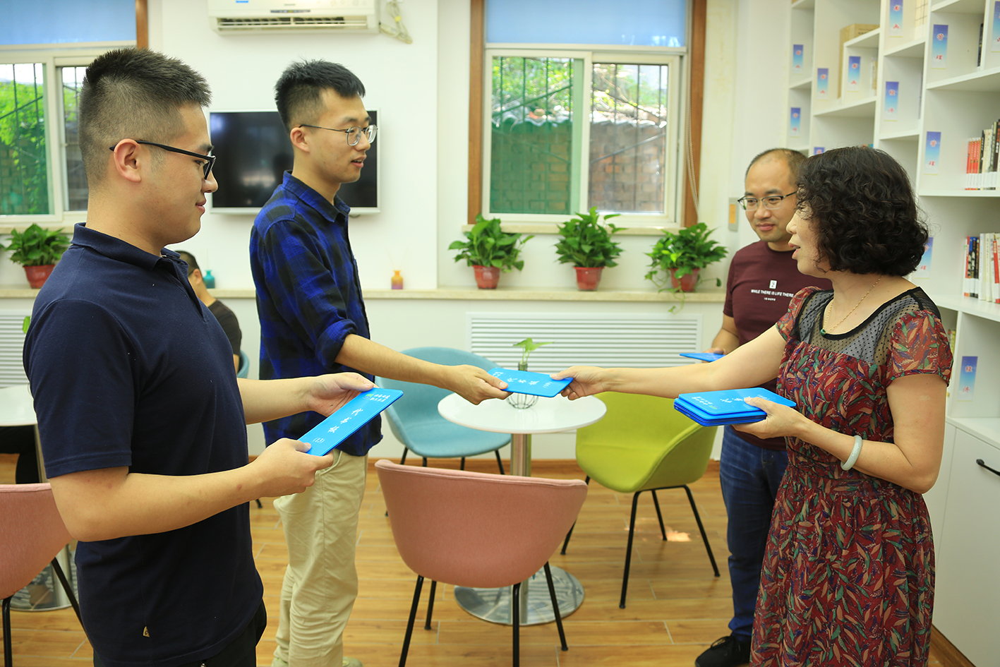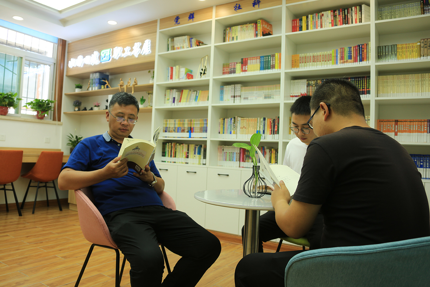 革新升级后的职工书屋既有“颜值”又有“气质”,清新清雅的装修作风,搭配简约时尚的桌椅,又有藏品、装饰品和花卉绿植遮盖其间,还设置了效劳吧台,还为职工免费提供饮品。同时增补了藏书、完善了书屋治理制度、配置了便当的借书系统。书屋每天中午和下午下班后开放,成为职工精神文化家园。