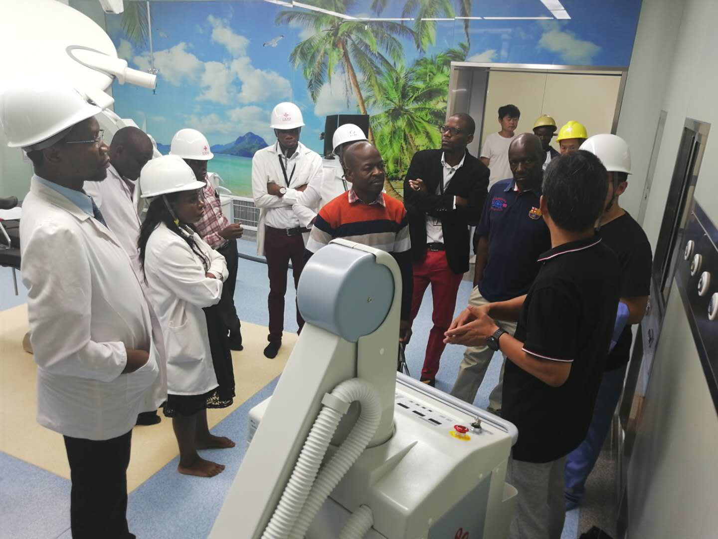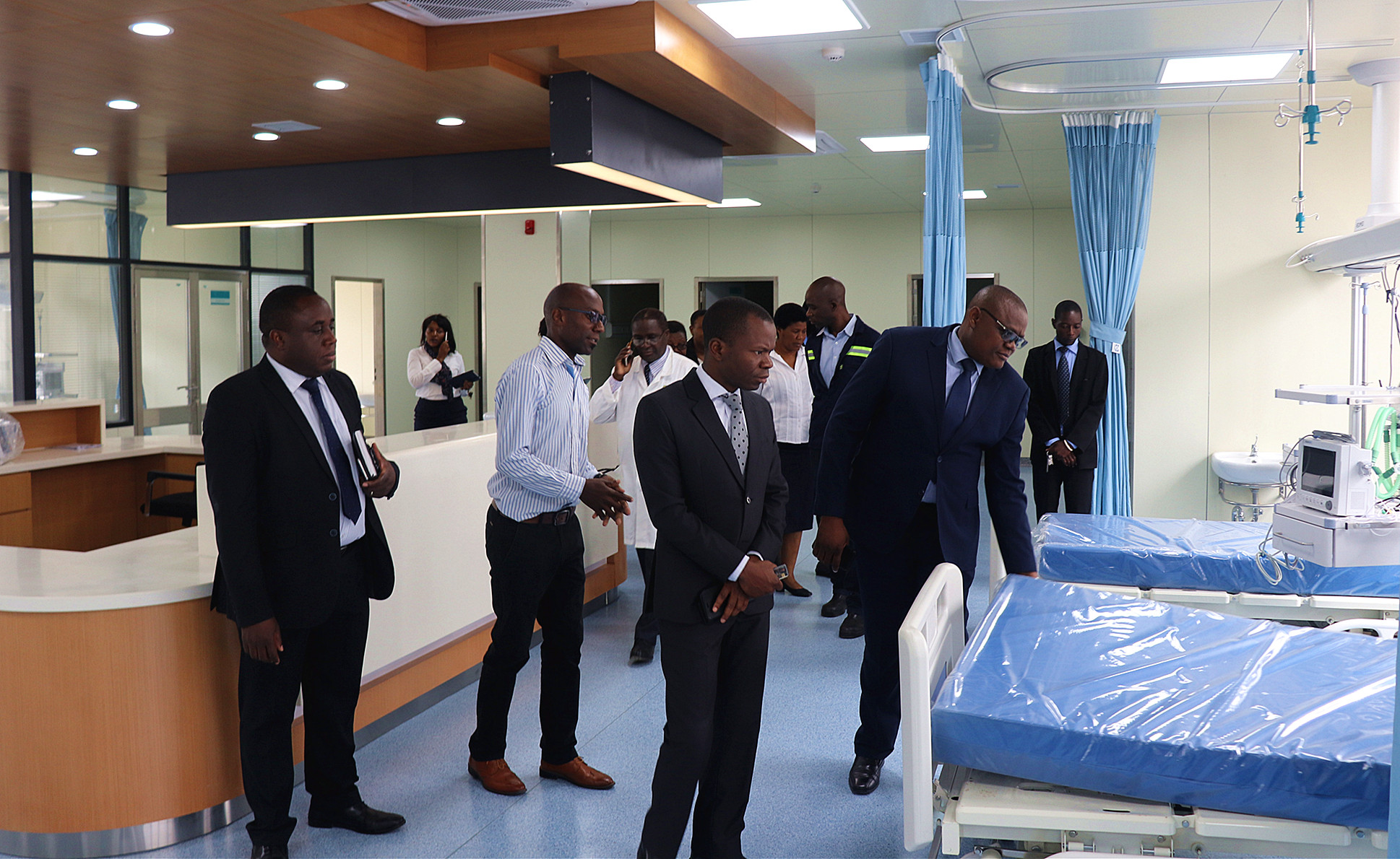 外地确诊患者紧急入院治疗期间,因事发突然,新建医院的各项仪器和设备正在调试之中,新进驻的外地医护人员对有关医疗设备使用尚不明确。为了资助赞方医务人员尽快开展事情,项目部专业工程师发挥人道主义精神,掉臂个人安危,深入病区为医护人员演示和实操种种医疗设备,对种种仪器的使用方法进行了细致的业务培训,确保医务人员全部掌握。