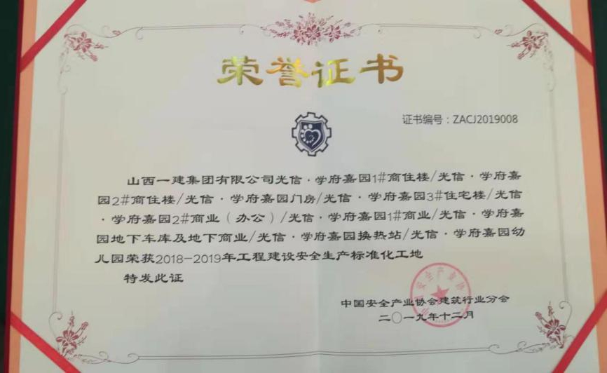 12ÔÂ22ÈÕ£¬ÖйúÄþ¾²Éú²úлὨÖþÐÐÒµ·Ö»á2019ÄêÄê»áÔÚº¼ÖݾÙÐС£»áÉÏ£¬¶Ô2019ÄêÄþ¾²Éú²úÏȽøµ¥Î»½øÐÐÁ˱íÑ¹«Ë¾³Ð½¨µÄ¹âÐÅ¡¤Ñ§¸®¼ÎÔ°ÏîÄ¿ÈÙ»ñ¡°2018-2019Ä깤³ÌᦻáÄþ¾²Éú²ú±ê×¼»¯¹¤µØ¡±£¬µÚ¾Å·Ö¹«Ë¾Äþ¾²¿ÆÀî¸ßƽ´ú±íÁì½±¡£