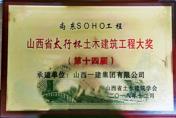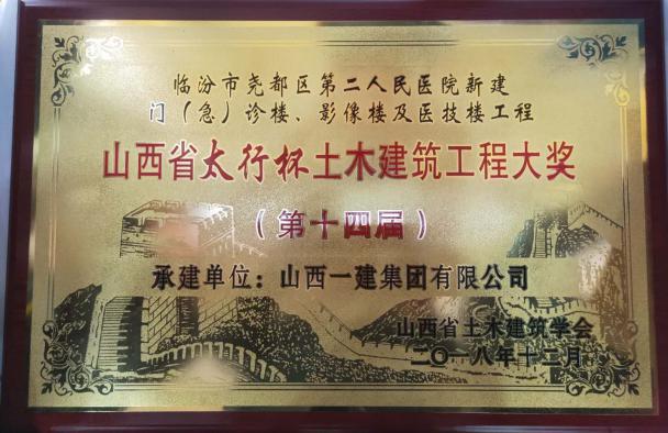 3月29日,山西省土木建筑学会在铁道大厦举办第十四届“太行杯”土木建筑工程大奖颁奖仪式。公司承建的尚东SOHO工程及临汾市尧都区第二人民医院新建门(急)诊楼、影像楼及医技楼工程荣获“太行杯”大奖。