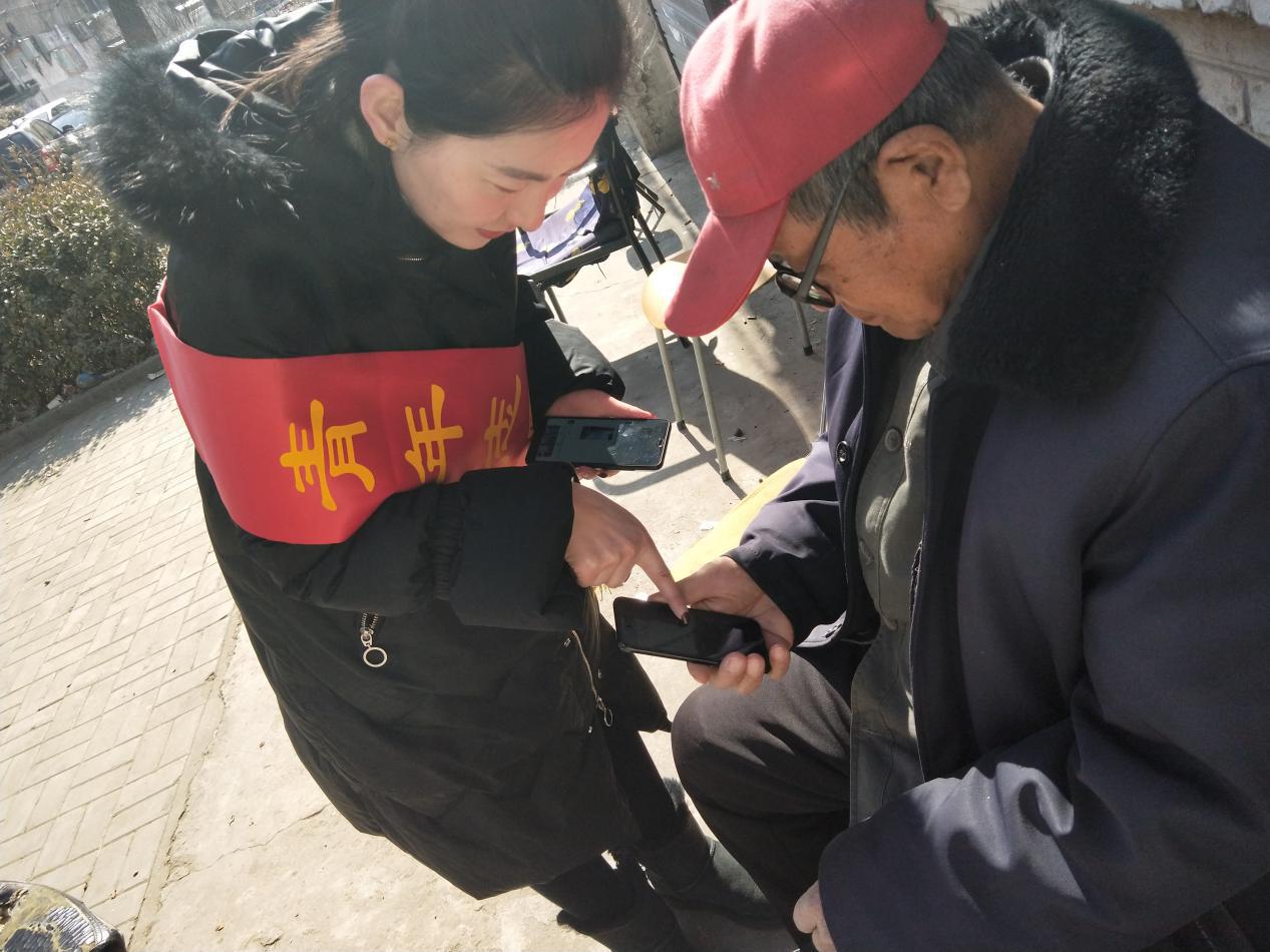 青年志愿者到公司涧河小区资助离退休党员下载“学习强国”APP