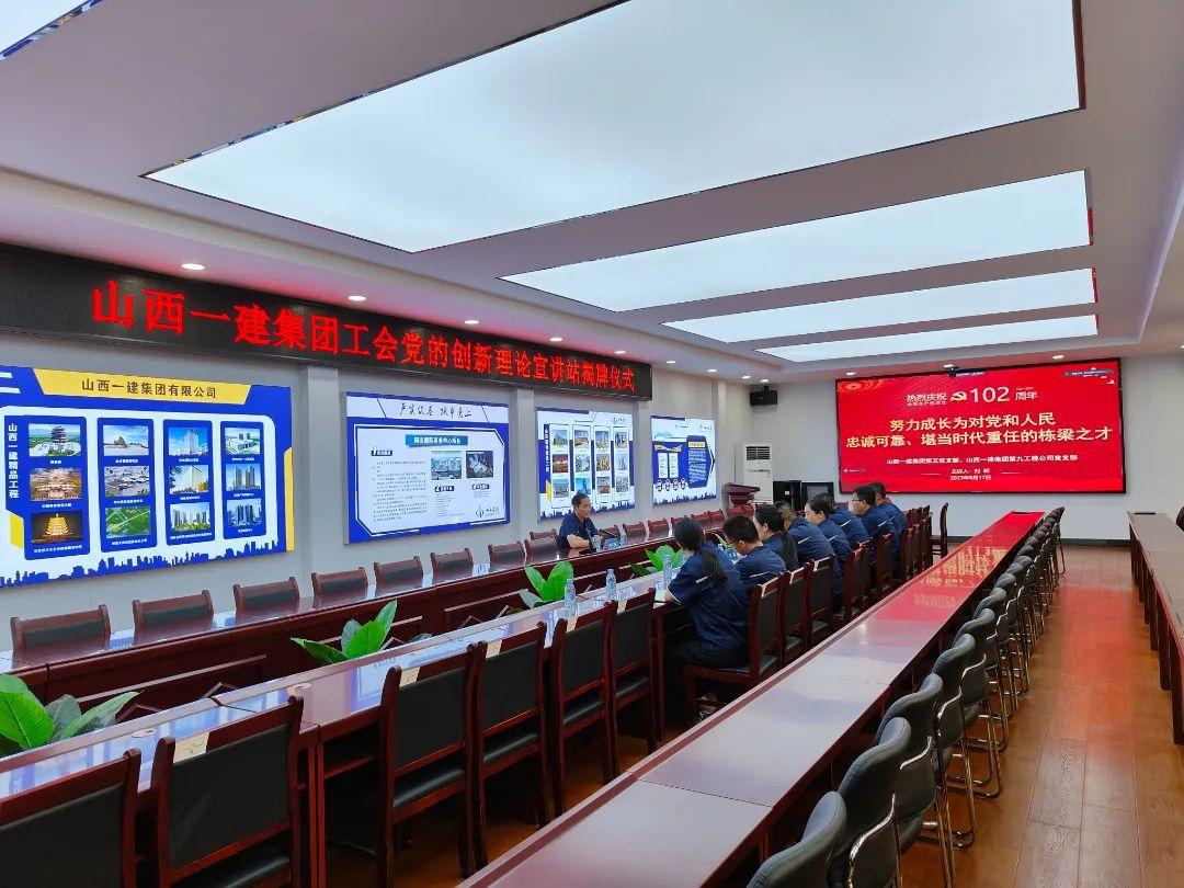 一建集团工会党的立异理论宣讲站揭牌仪式暨首场宣讲会在第九工程公司清徐阳光国际商务中心项目举行。总工程师、工会主席刘晖为工会党的立异理论宣讲站揭牌 ,并进行了首场宣讲。