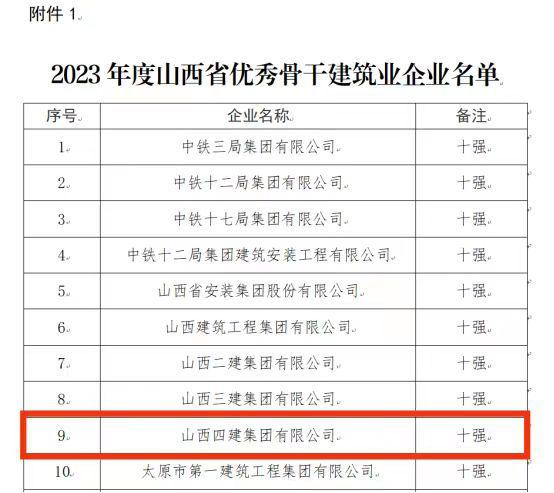 ½üÈÕ £¬É½Î÷ʡס·¿ºÍ³ÇÏçᦻáÌüÐû²¼¡¶¹ØÓÚÈ϶¨2023Äê¶ÈɽÎ÷Ê¡Ö÷¸É½¨ÖþÒµÆóÒµµÄ¾ö¶¨¡· £¬É½Î÷½¨Í¶ËĽ¨¼¯Íű»È϶¨Îª¡°2023Äê¶ÈɽÎ÷ʡʮǿÓÅÐãÖ÷¸É½¨ÖþÒµÆóÒµ¡±¡£