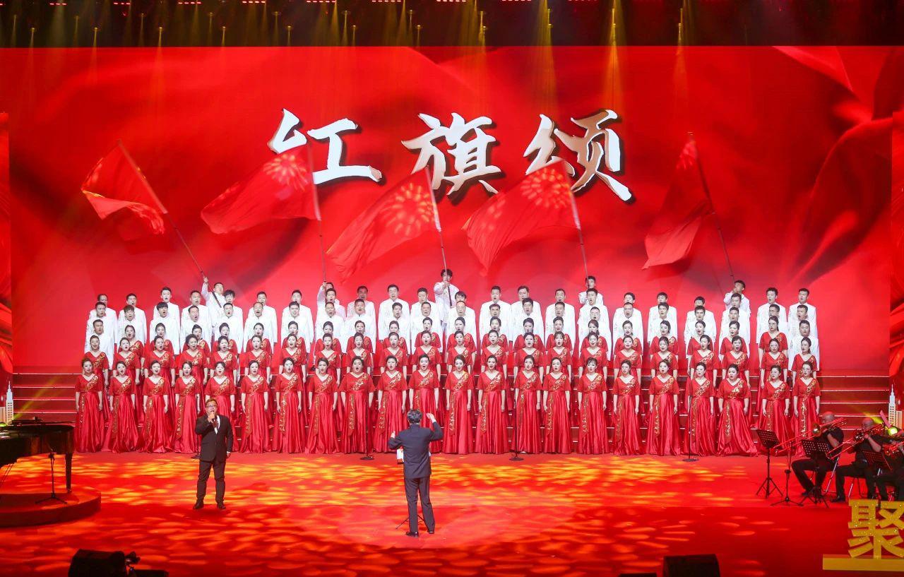 五建集团合唱队演唱的《山西建投之歌》及自选曲目《红旗颂》,获得了现场观众们的热烈掌声。《红旗颂》淋漓尽致地展现着革命时代的热血高昂与青春无畏,合唱步队近一个月对演唱技巧的细心打磨、对歌曲故事的潜心挖掘,诠释了中原子女跨越泱泱山海、勇毅前行的豪爽与壮阔。