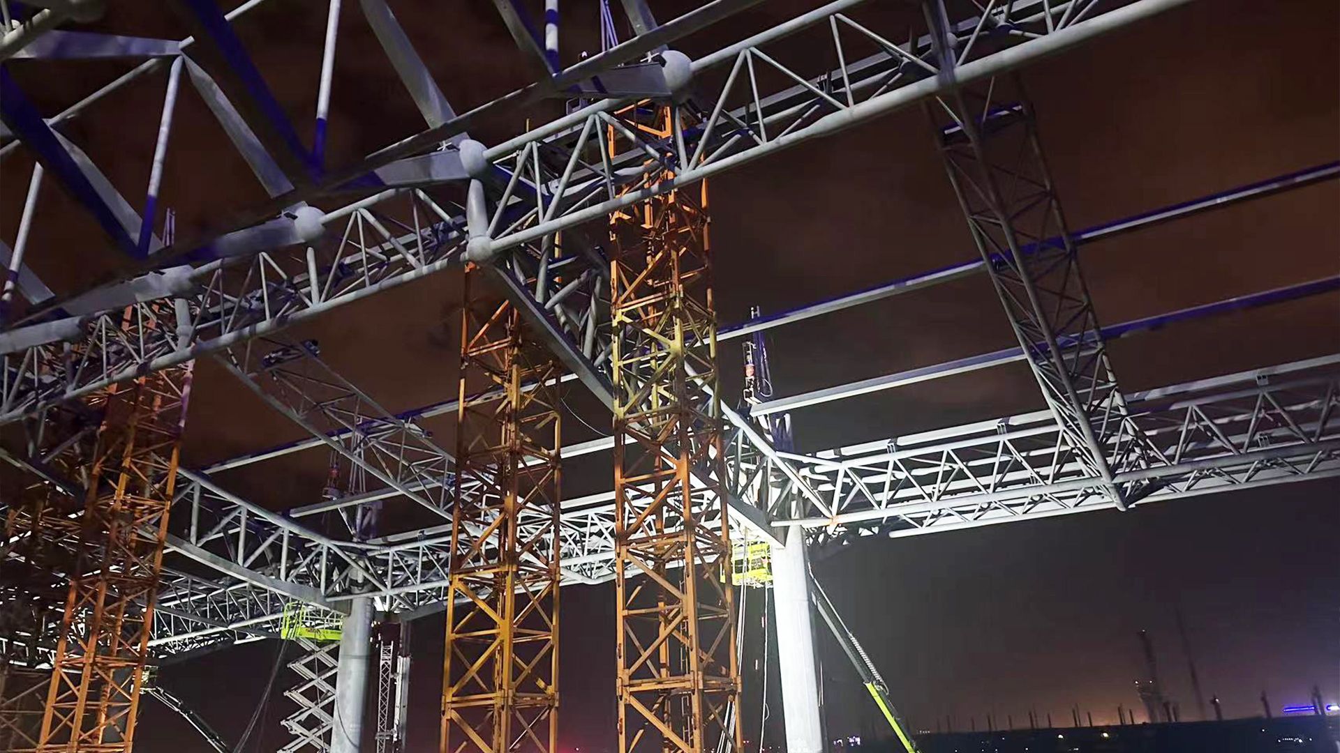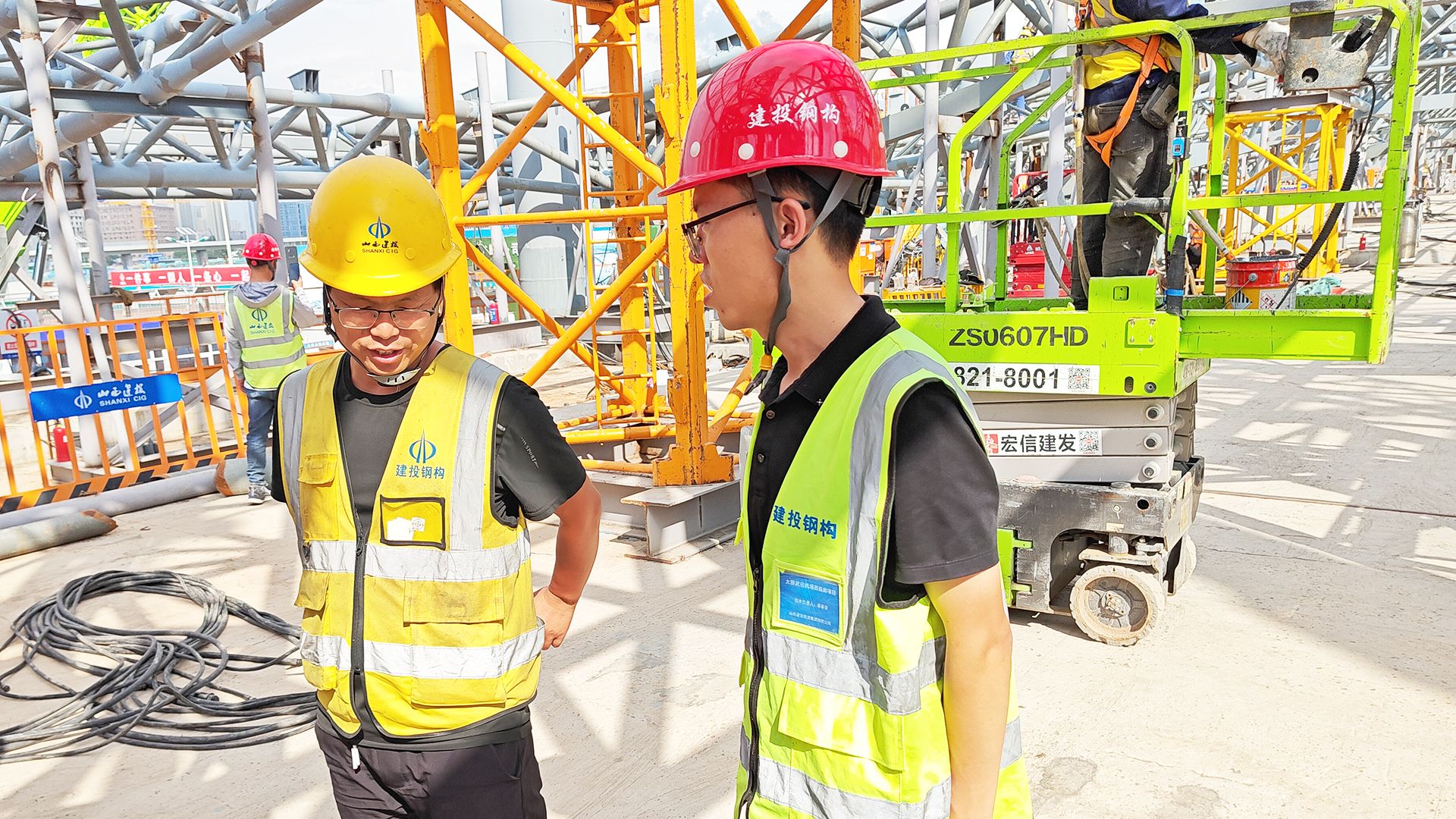 西指廊项目经理霍雷雨也是忙得连轴转,杆件拼装、焊缝检测、桁架提升、宁静检查、计划交底、进度监督、对接甲方、协调车间等,对现场100余人进行“排兵排阵”,不绝细化施工计划,做好每日计划,确保新宝会进度。