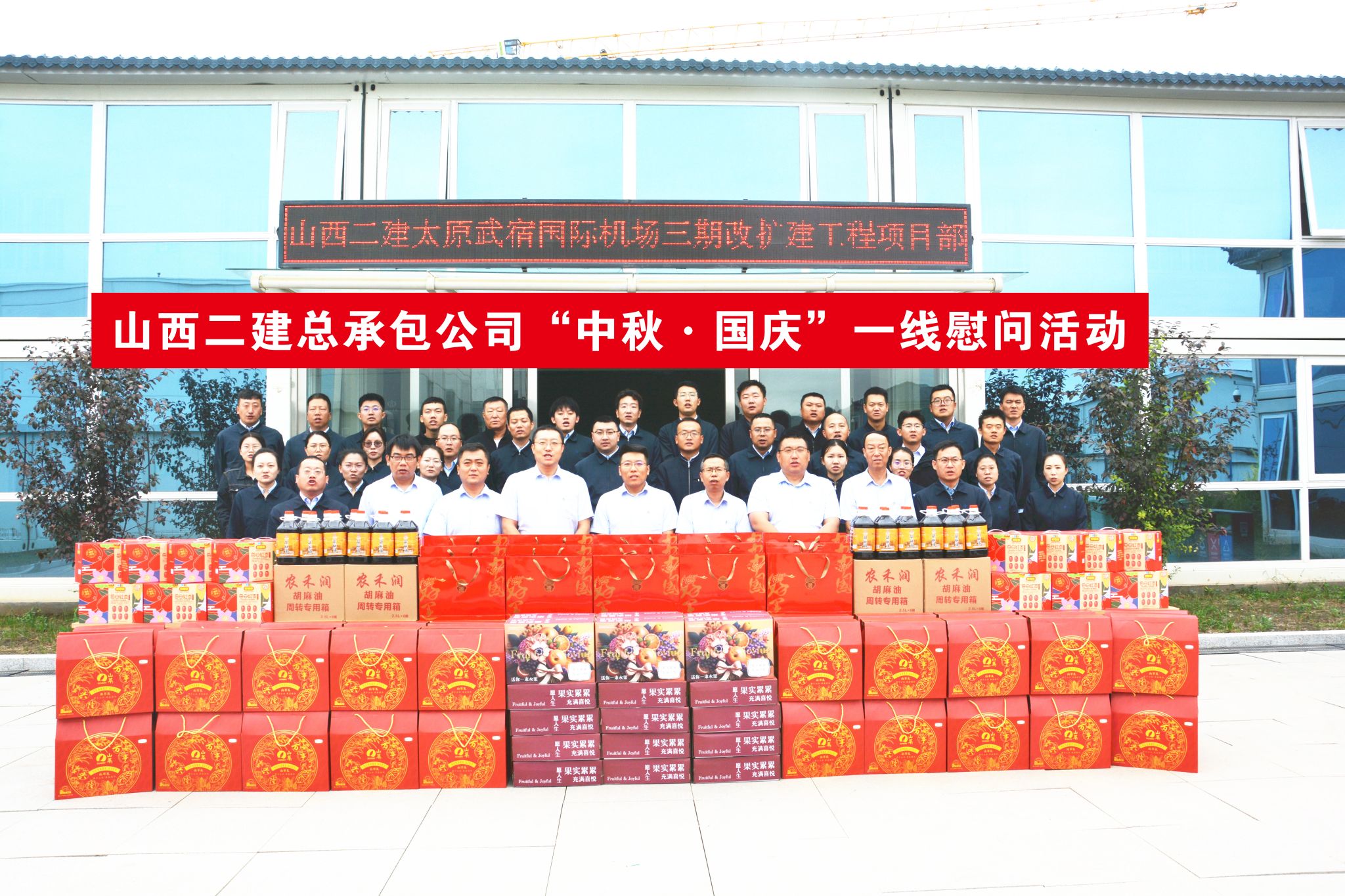 二建集团各下层单位纷纷开展“情暖双节 同心筑梦”一线送温暖慰问运动,向一线治理人员、劳务工友送上月饼、水果等慰问品,向各人致以高尚的敬意和亲切的问候。