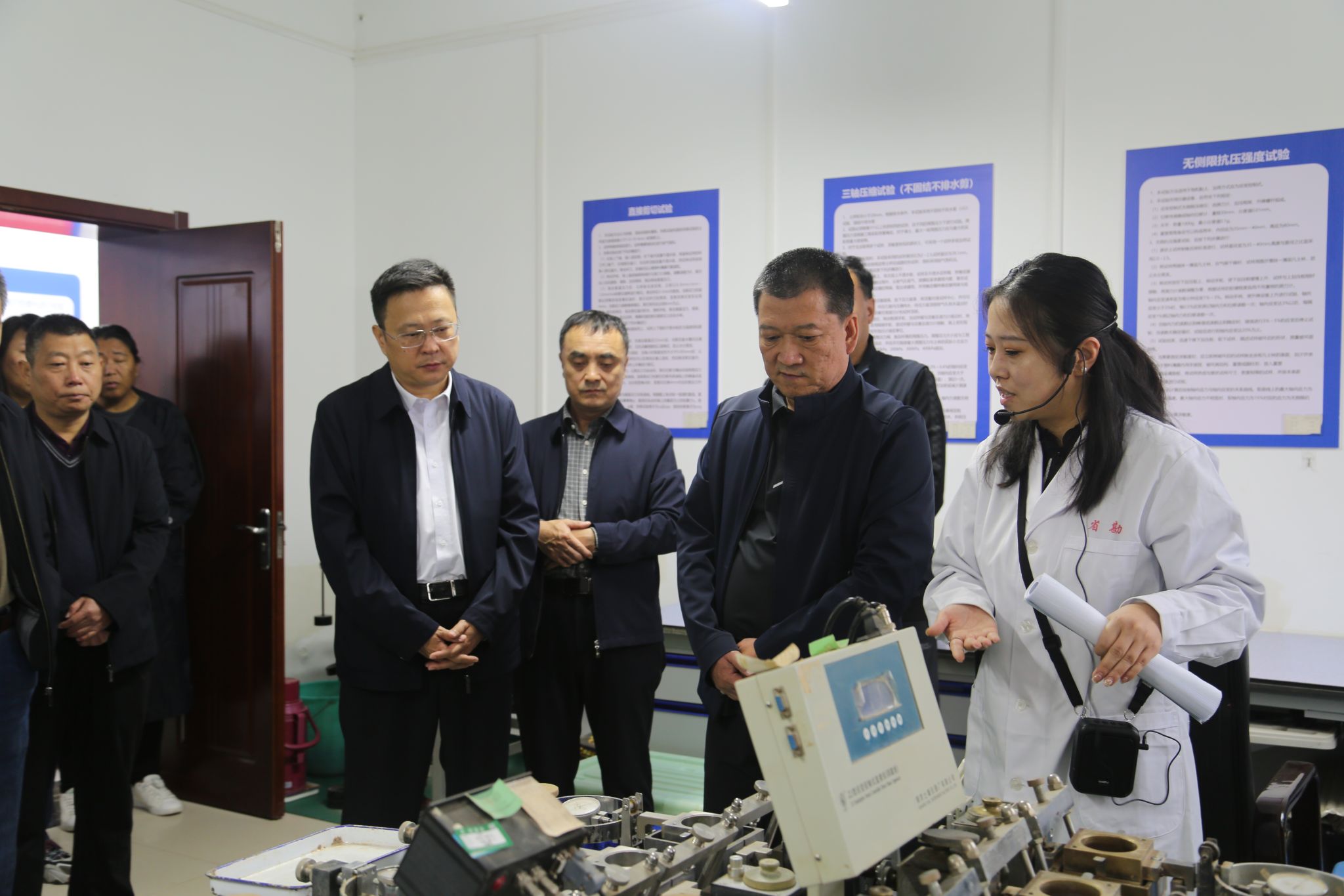 调研组实地旅行企业检测试验中心和摆设室,通过近距离接触岩土试验流程,对岩土工程领域科技立异事情有了更直观认识。公司相关技术人员向调研组汇报科技立异事情开展情况,详细介绍山西省岩土工程技术立异中心的新宝会进展。