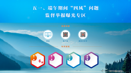 为连续推进正风肃纪,营造风清气正节日气氛,中央纪委国家监委网站推出“五一、端午期间‘四风’问题监督举报曝光专区”,加大典范案例通报曝光力度,连续释放全面从严、一严究竟的强烈信号。专区开设“我要举报”窗口,链接中央纪委国家监委统一举报平台,接待宽大网友通过网站、手机客户端和微信民众号,对节日期间易发的违规吃喝、违规收送礼品礼金、违规使用公车、公款旅游、违规发放津贴补贴或福利等问题进行举报。专区“每周通报”栏目从5月6日起,分4次集中对各地查处的“四风”典范问题点名道姓通报曝光,强化警示震慑,确保节日风清气正。