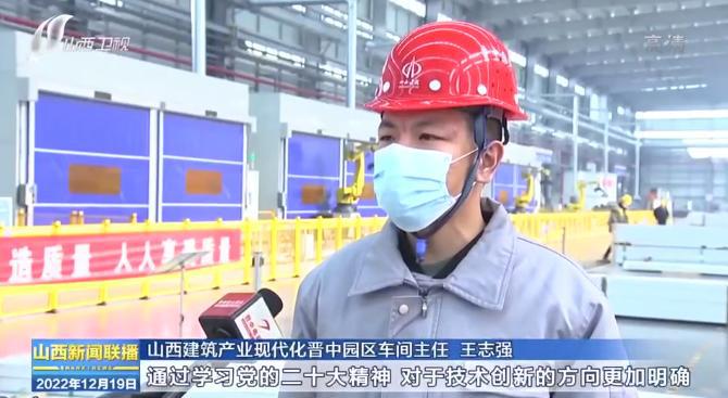 12月19日,山西卫视《山西新闻联播》就山西建筑工业现代化晋中园区深入学习宣传贯彻党的二十大精神进车间、进班组,以立异求突破,以实干促生长,奋力冲刺全年生产任务进行报道。
