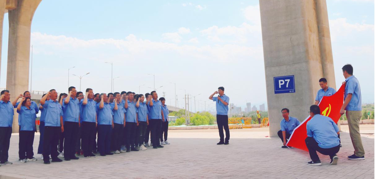 在晋中市环城东路北延二工区项目现场,各人胸前党徽熠熠,神情庄重,举起右拳,重温入党誓词:“我志愿加入中国共产党,拥护党的纲要,遵守党的章程……”铿锵的誓词、坚定的允许,让在场的每位共产党员、积极分子都感应心潮澎湃、热血欢喜,思想再一次获得净化和升华。
