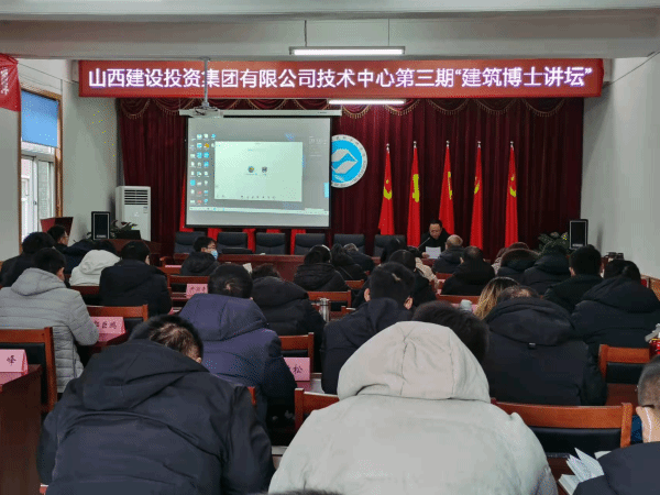 2021年12月29日,山西建投集团技术中心在山西省建筑科学研究院有限公司三楼集会室举办了第三期“建筑博士讲坛”。建投集团技术治理部副部长、技术中心副主任李英涛,建科院党委副书记、副董事长、工会主席赵强,以及来自建投集团所属二建、三建、六建、八建、机械化、煤设院、建科院等单位专业技术人员50余人加入了本次讲座运动。
