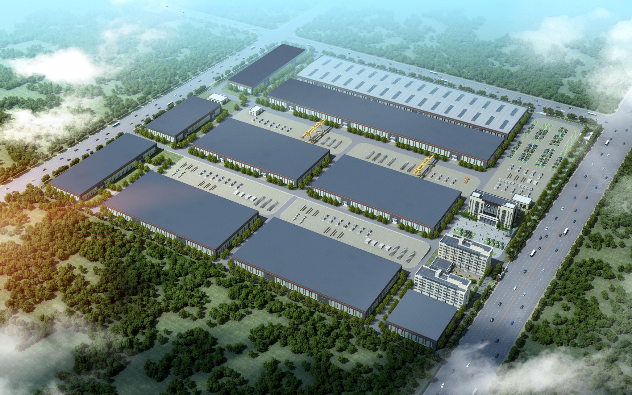 晋中园区位于山西综改示范区晋中开发区潇河工业园区,计划总投资31.08亿元,计划用地1243亩,主要产品包括装配式混凝土构件、高精度铝模、保温一体板、钢结构构件、节能门窗、铝板、装饰板等。叠合板生产线钢筋生产线综合生产线设备(布料机)综合生产线设备PK板生产线钢结构产品生产线装饰保温产品生产线高精度模板自动化生产线建筑节能玻璃智造中心钢化炉防火玻璃钢化炉正反弯Low-e玻璃钢化炉无机预涂装饰板底漆线无机预涂装...